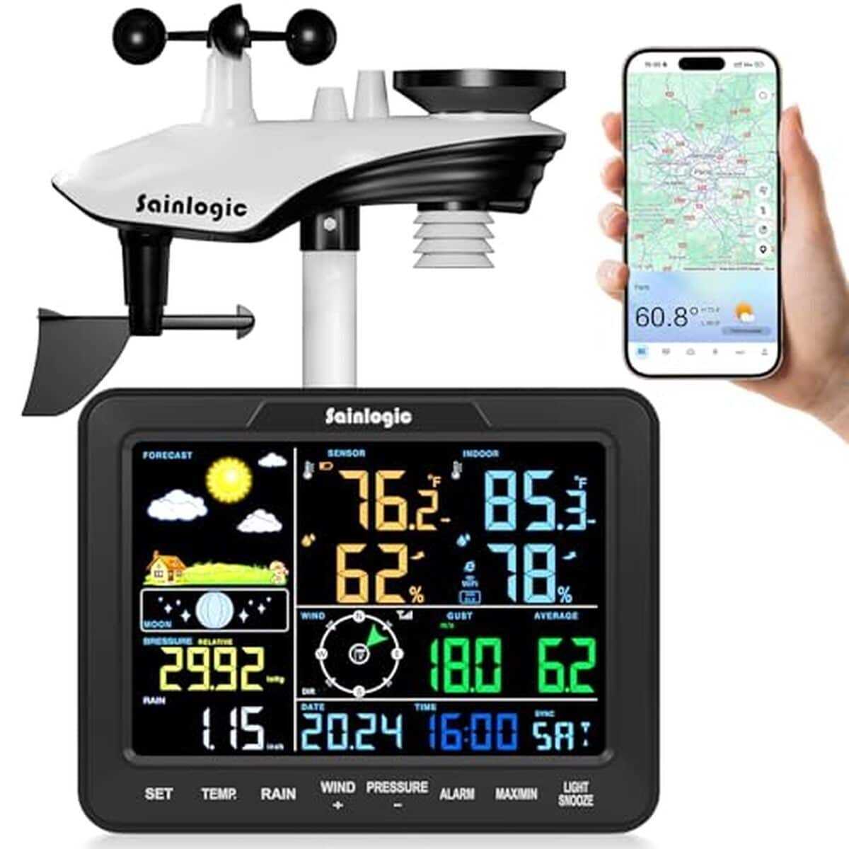 La station météorologique professionnelle sans fil Sainlogic est un outil de pointe destiné aux passionnés de météorologie et aux jardiniers...